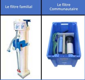 *AquaFilter est un système de filtration d’eau qui enlève la plupart des virus et toutes les bactéries y compris le choléra. Chaque filtre peut filtrer au moins 20 000 litres d’eau potable soit 90 l / h. En plus, il y a un filtre communautaire, conçu pour les espaces publics, tels que les écoles et les cliniques médicales. Il peut livrer jusqu’à 300 litres par heure et a été testé avec plus de 560 000 litres.